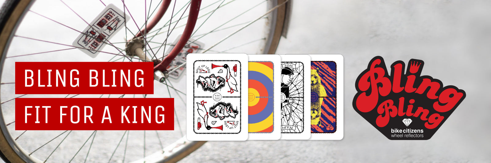 Spoke Cards from Bike Citizens are available in sets of 4 in choice of themes: Bauhaus, Animal, Fame, and Bling Bling.
