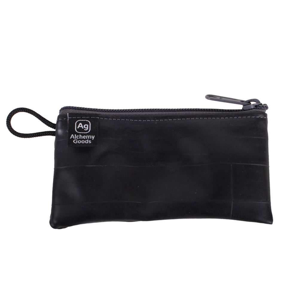 Designed to be simple and stylish storage solutions, this pouch is made from upcycled bicycle inner tubes so your stuff stays protected and dry. It's a great wallet alternative, cell phone case, spare change container, or tool/flat repair kit.