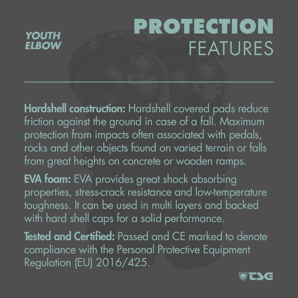 TSG gets it that bikers, athletes, or parents do not want any compromise when it comes to safety. TSG safety pads are made with the utmost quality and performance standards to meet the European regulations for personal protective equipment. Designed in Switzerland, TSG elbow guards are tested by an internal team of riders and certified by independent lab testing.