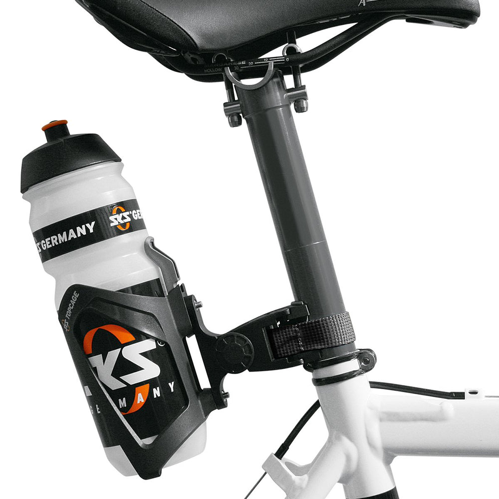 This SKS Bottle Cage Adapter can be attached to seatpost or tube using SKS’s well-proven quick release mount system. It is easy to install, adjustable to use with all standard bottle cages and great for all road, road, and mountain bikes.