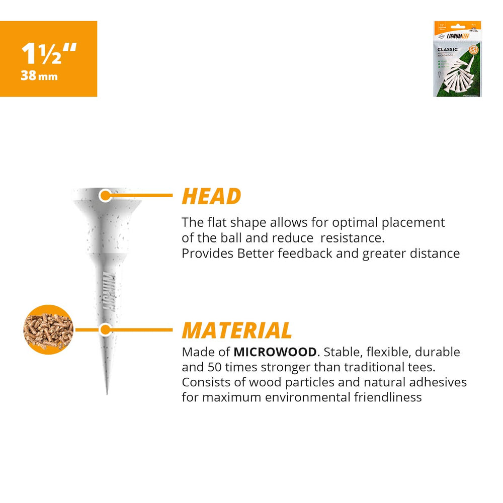 Lignum Tee - Classic Golf Tees - 1.5" (38mm) - White - 16 pcs/bag | NOTE: This item will be special ordered for you. Kindly allow 2 to 6 weeks of lead time.