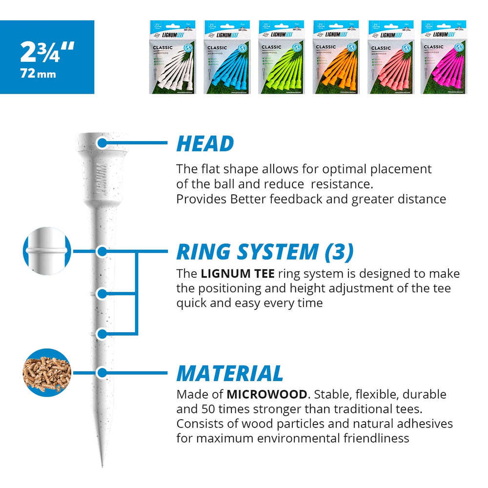 - HIGH QUALITY, MADE IN EUROPE: Lignum Tees are manufactured in Europe and is recommended by over 5 Million golfers for consistent tee height for a better game. Their smooth and soft profiling ensures comfort as well as no damage to any material that is used in turf maintenance.