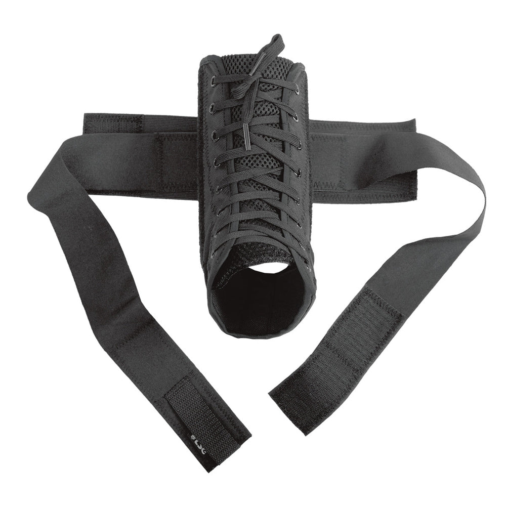 Stabilising ankle support system for prevention against sprains and other ankle-related injuries. Flexible hems and 3D mesh padded tongue for max wearing comfort.