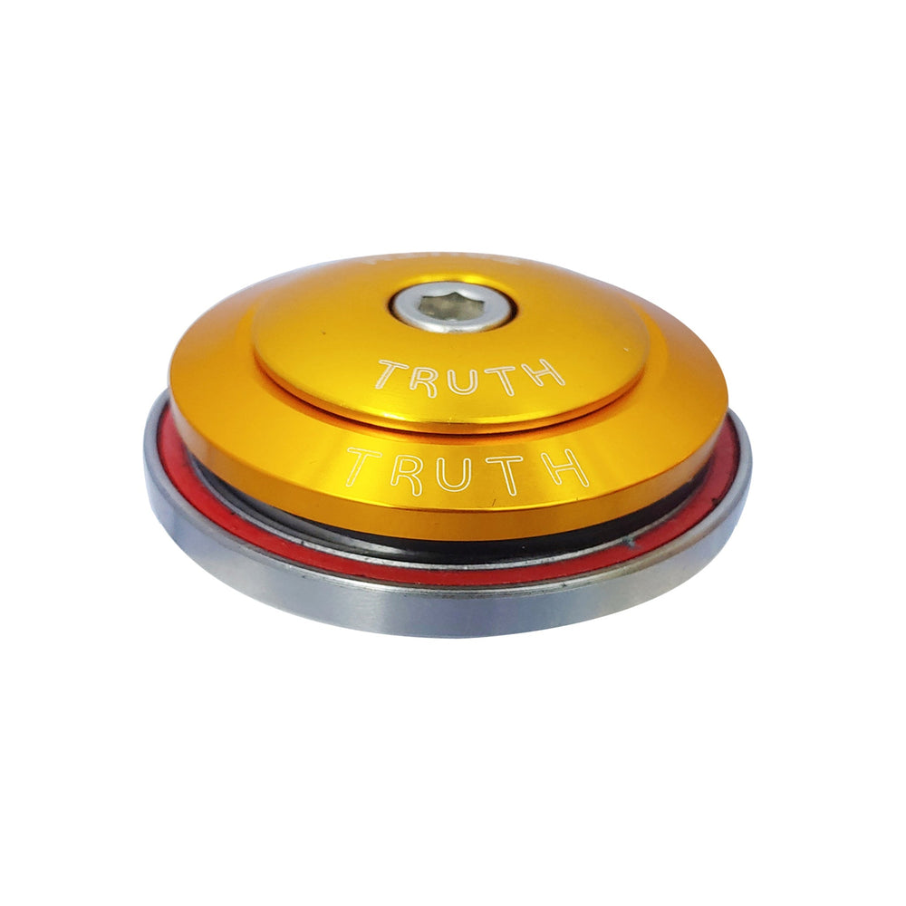 The headset includes a CNC-machined aluminum top cap with the Truth logo a thin rubber dust seal to prolong bearing life, and a split aluminum bottom race for easy installation and removal.