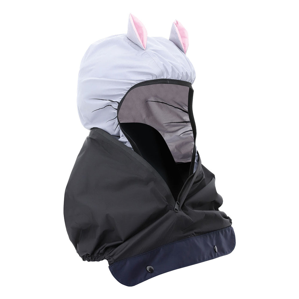 • Rainproof hood accessible via a heat–sealed zip in the cape, for use with/without helmet